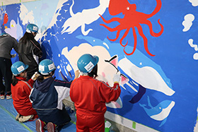 下水道施設に親しんでいただき、下水道への理解や関心を深めていただけるよう県内高等学校の美術部と制作を進めてきた元荒川水循環センターの壁画が完成しました。